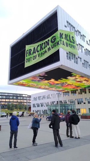 Activists from #EndeGelände and @ExtinctionR_NO and Mapuche are telling #Equinor to #FrackOff!