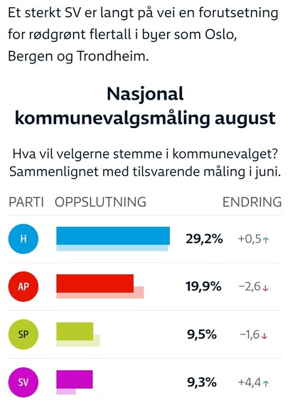 #SV kan gjÞre et svÊrt godt valg, og dét trengs for Ä hindre hÞyrestyre i flere byer. Partiet puster SP i nakken og kan bli Norges tredje stÞrste parti under #valg2023