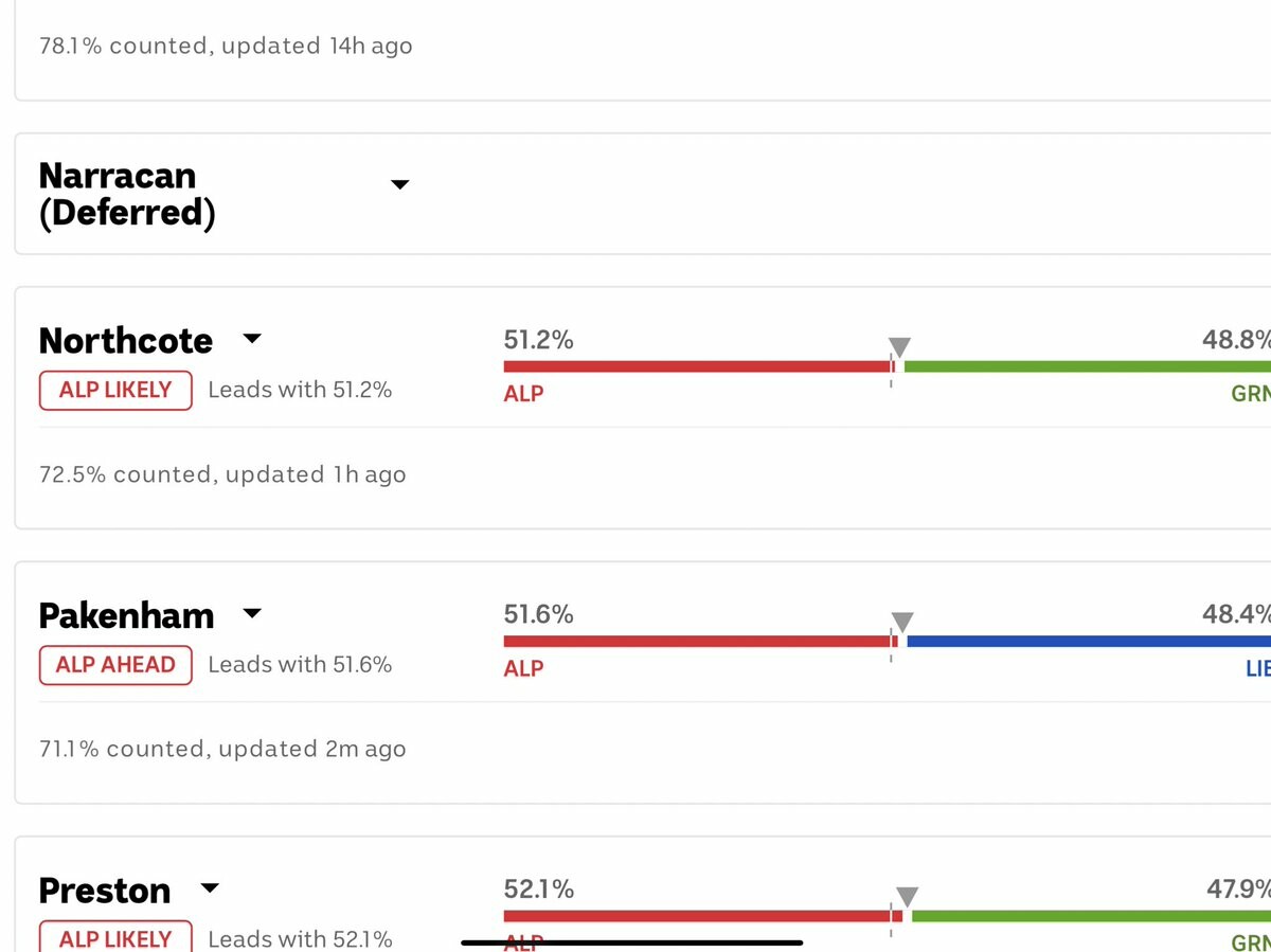 #Auspol #Northcote actually no Kat. Pretty sure if the Green win Northcote it will be because the people of Northcote voted for the Greens, the the Liberal party