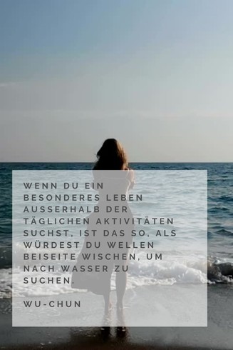 > Wenn du ein besonderes Leben außerhalb der täglichen Aktivitäten suchst, ist das so, als würdest du Wellen beiseite wischen, um nach Wasser zu suchen.