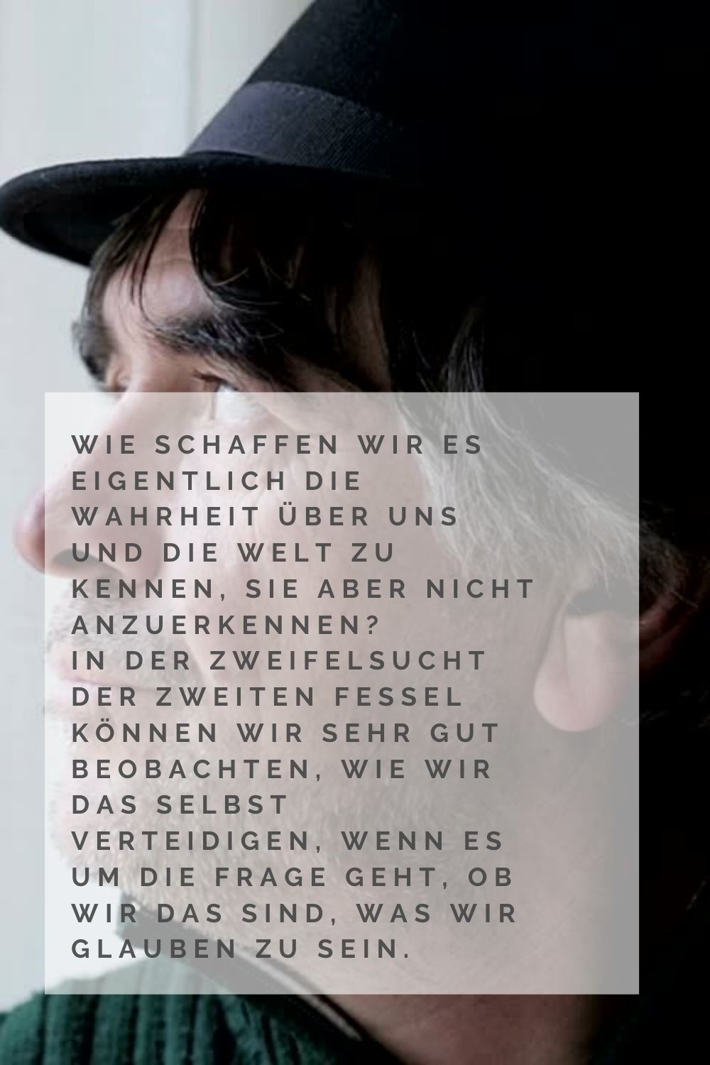 In der Zweifelsucht der zweiten Fessel können wir sehr gut beobachten, wie wir das Selbst verteidigen, wenn es um die Frage geht, ob wir das sind, was wir glauben zu sein.
