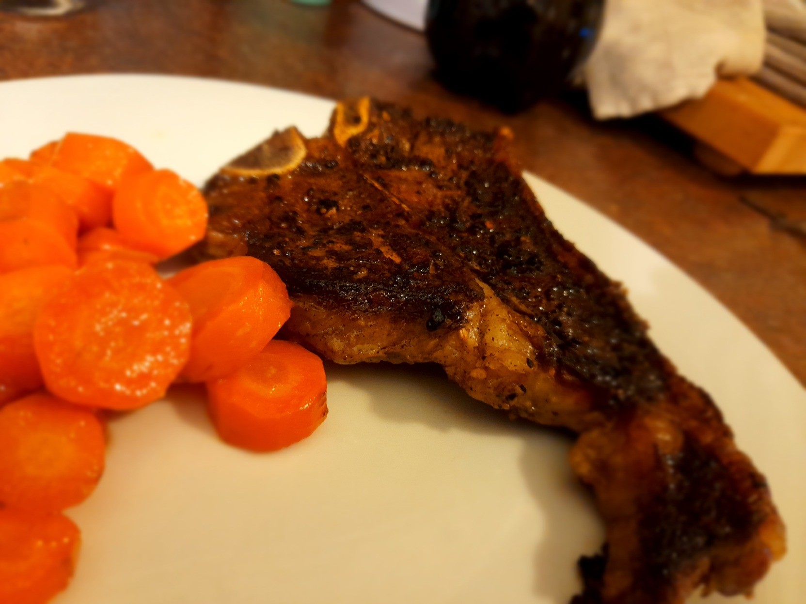 Last night we enjoyed a wonderfully marbled t-bone from the #IrishDexter we purchased from a local farm. The picture is horrible but the meat was a perfect medium rare. Carrots are from the garden. Tonight its burgers from the same cow. What a difference in taste from big box grocers. Cost effective too.