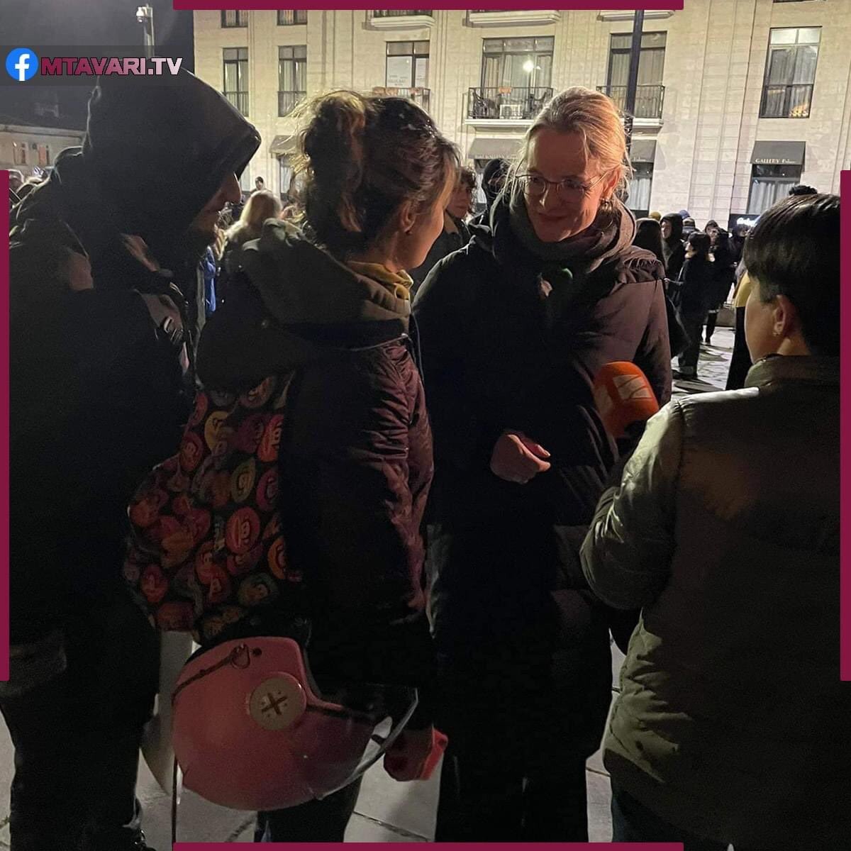 MEP @ViolavonCramon joined the protesters in front of the Governmet building in Tbilisi 🇬🇪. People are demonstrating in support of 21yo Lazare Grigoriadisi. He was arrested at the #NoToRussianLaw protests.