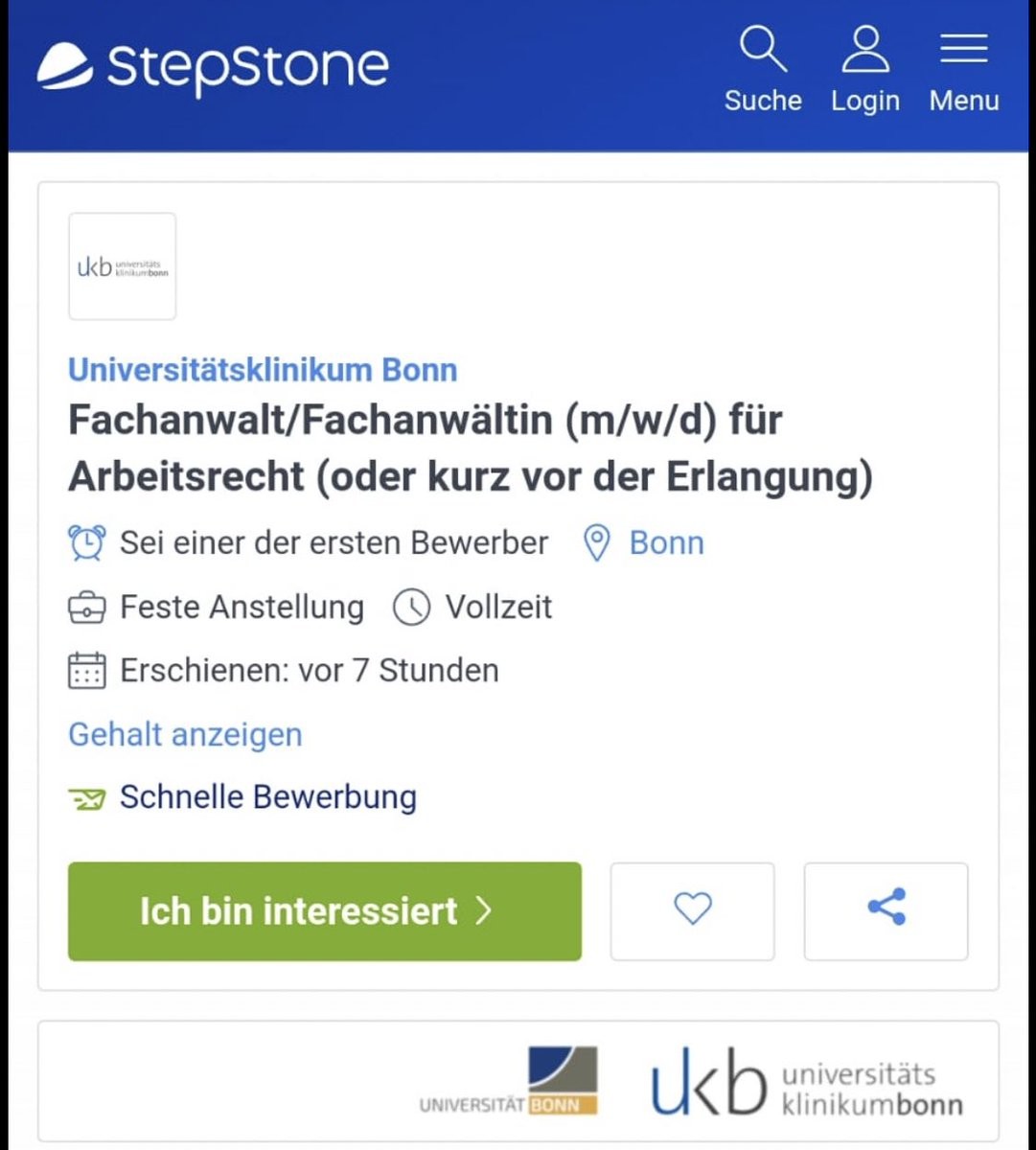 Wir wünschen der Uniklinik Bonn viel Erfolg bei der Suche nach der nötigen Fachexpertise.