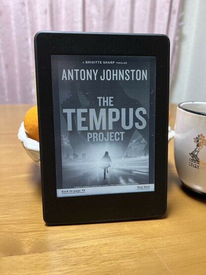 On a cold winter day I am curled up with a blanket, hot chocolate, and some satsumas reading the second book in the Brigitte Sharp series, THE TEMPUS PROJECT, by @antonyjohnston
