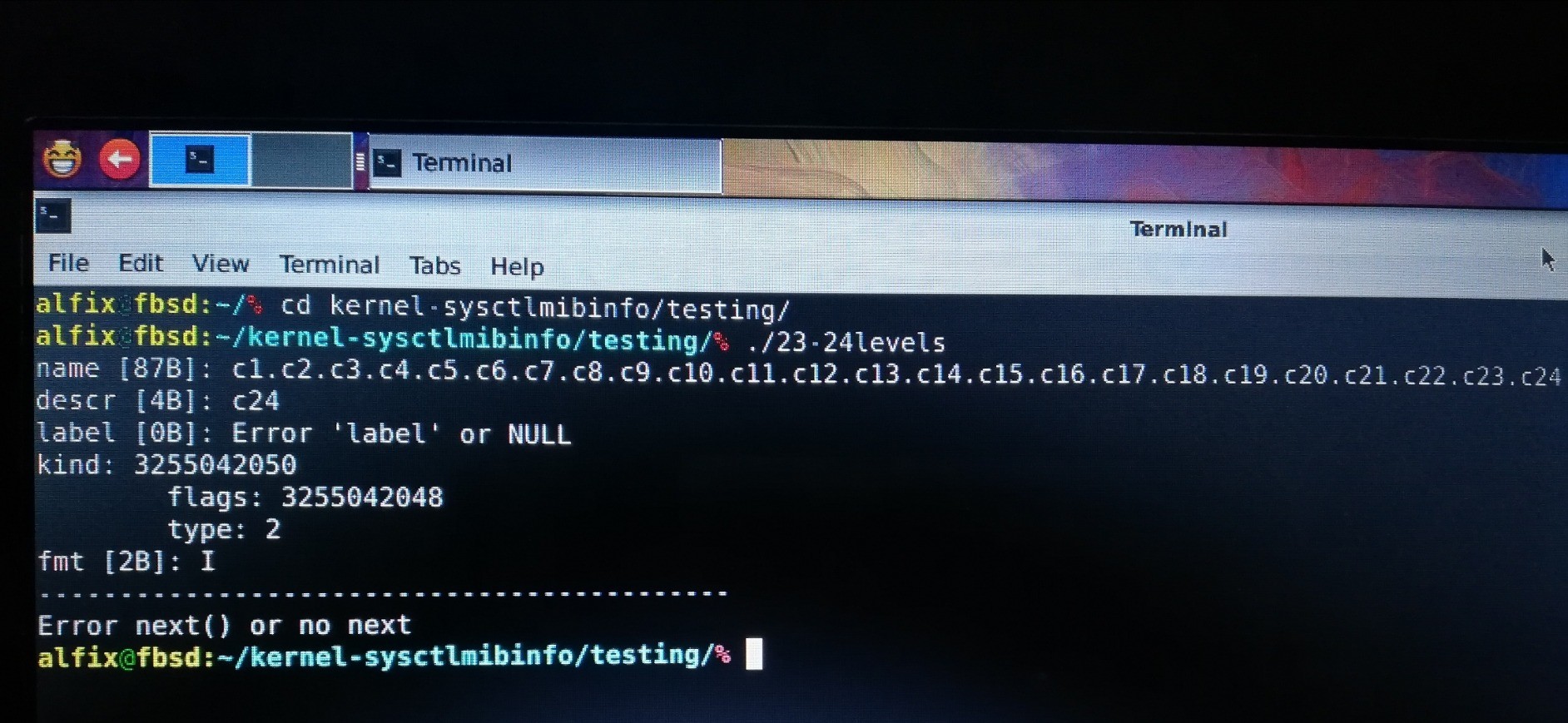 My first #FreeBSD kernel space project: below the properties of a 24-levels sysctl from kernel to userland 👨💻😅. More later it is still WIP #sysctlview #nsysctl