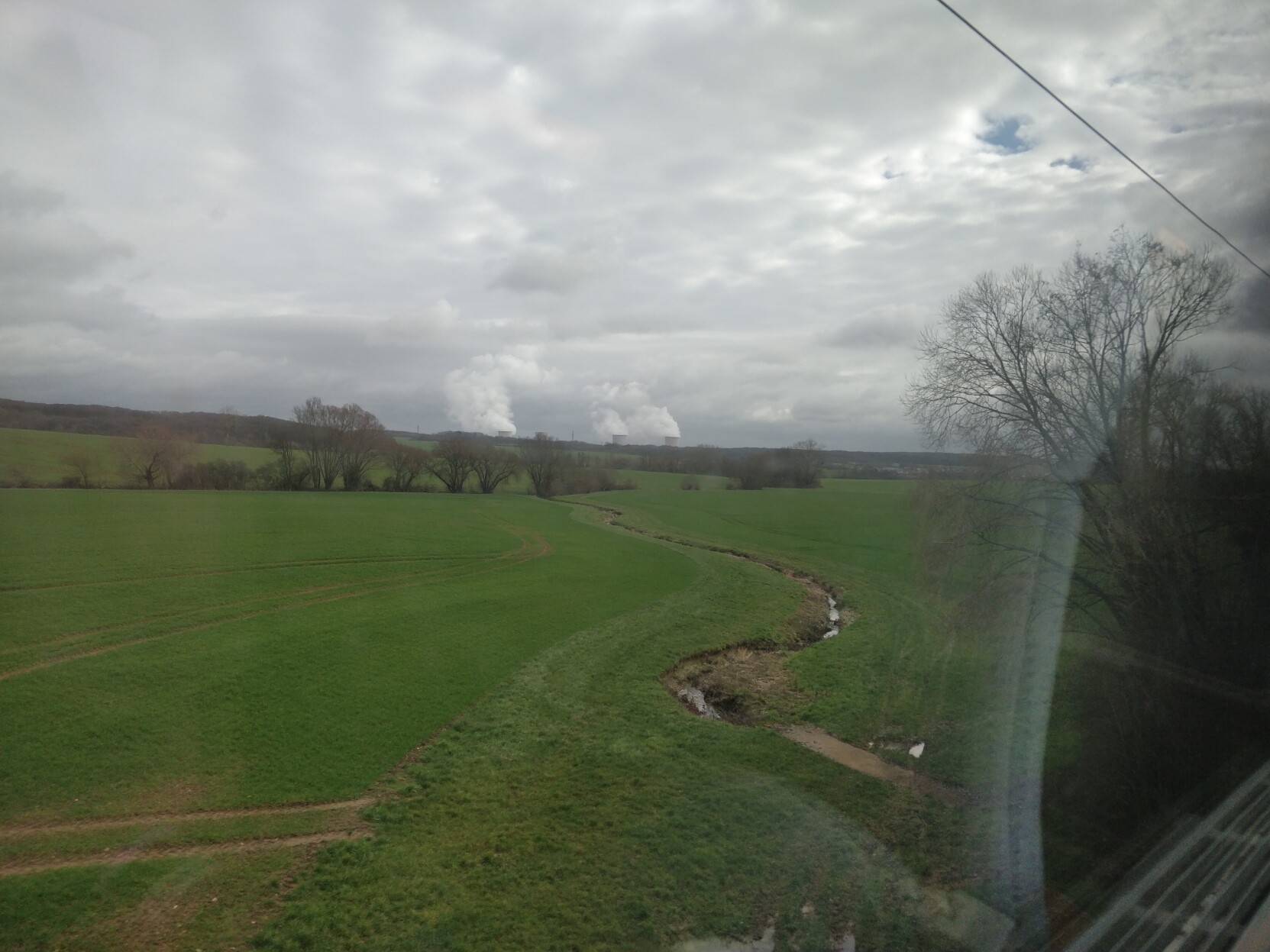 3 des 4 cheminรฉes de la central de Cattenom turbinent.