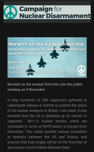 #Norwich and #Norfolk people, do come to this #CND public meeting on Wednesday if you can, if you're interested in #peace and #disarmament