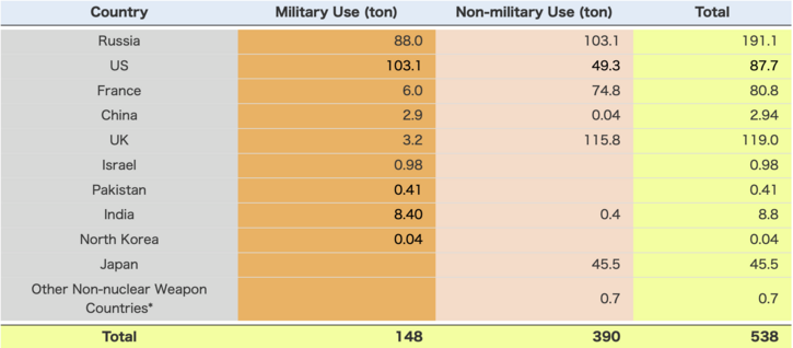 Global Inventory of Separated Plutonium (Data: End of 2019)