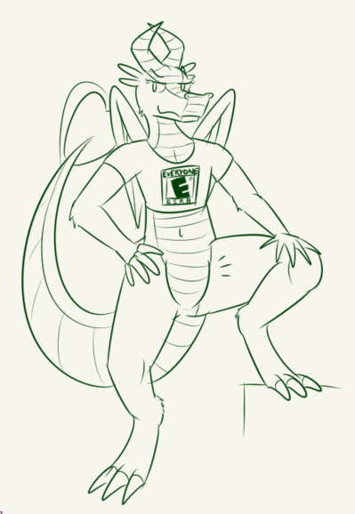 A gift from https://www.furaffinity.net/user/g472y of Pean posing with his rather large brain and showing it needs manual support!