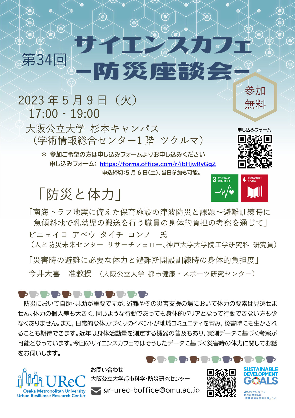 On Tue, May 9, I will talk about tsunami disaster prevention for childcare facilities in preparation for the predicted Nankai Trough Earthquake at Osaka Metropolitan University.