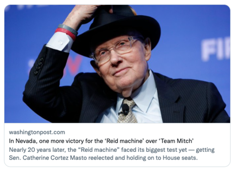 The #ReidMachine powered by the labor movement remains strong & kept rolling in Nevada delivering a massive win for democracy. #Fediverse #TeamReid #NVPolitics https://www.washingtonpost.com/politics/2022/11/14/reid-mcconnell-nevada/