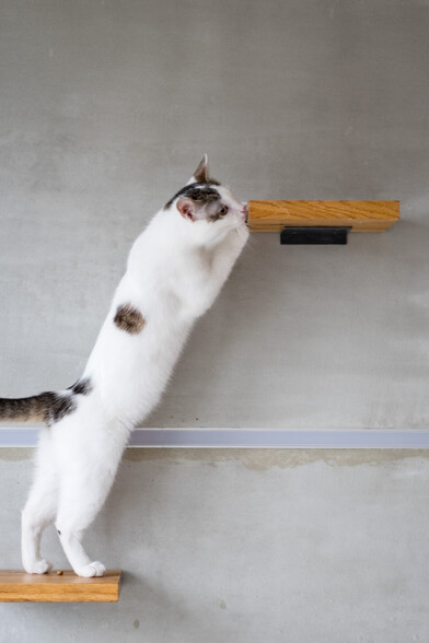 #NyushaTheCat discovers the meaning of the little wooden steps on the wall π