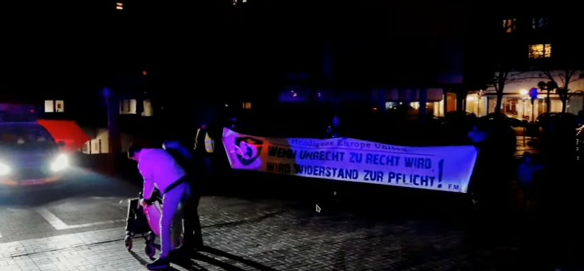 Es geht weiter Anmelder der einschlägig bekannte Tim W. aus Duisburg,+ weitere einschlägige Rechte aus Oberhausen. Reichsbürger*innen der sog. "Verfassungsgebenden Versammlung" ebenfalls wieder anwesend. Schon zu Beginn einzelne AHU Rufe.