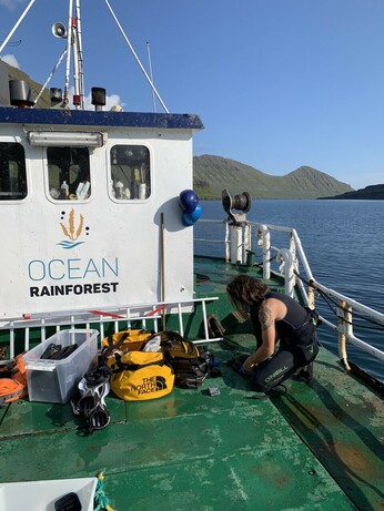 Scuba diving in the kelp forest in Funningsfjørður today. The Saccharina Latissima and Alaria Esculenta has grown very well since February and harvesting is ready. It will be cut now and will grow almost as much again before the second harvest in October #OceanRainforest #ScubaDiving #Diving #Kelp #Macroalgae #FaroeIslands