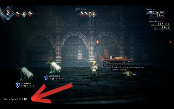 In #OctopathTravelerII, players can adjust game speed between 1x and 2x during combat.