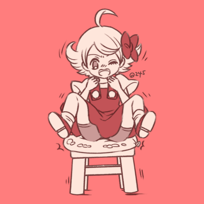 > バルーンファイトGBのアリスが椅子に置かれた風船をお尻で割るイラストを描いて下さい。 #odaibako_245_15277297 https://odaibako.net/detail/request/60e2c725-a2e7-4bc2-9b82-f20e71877f81