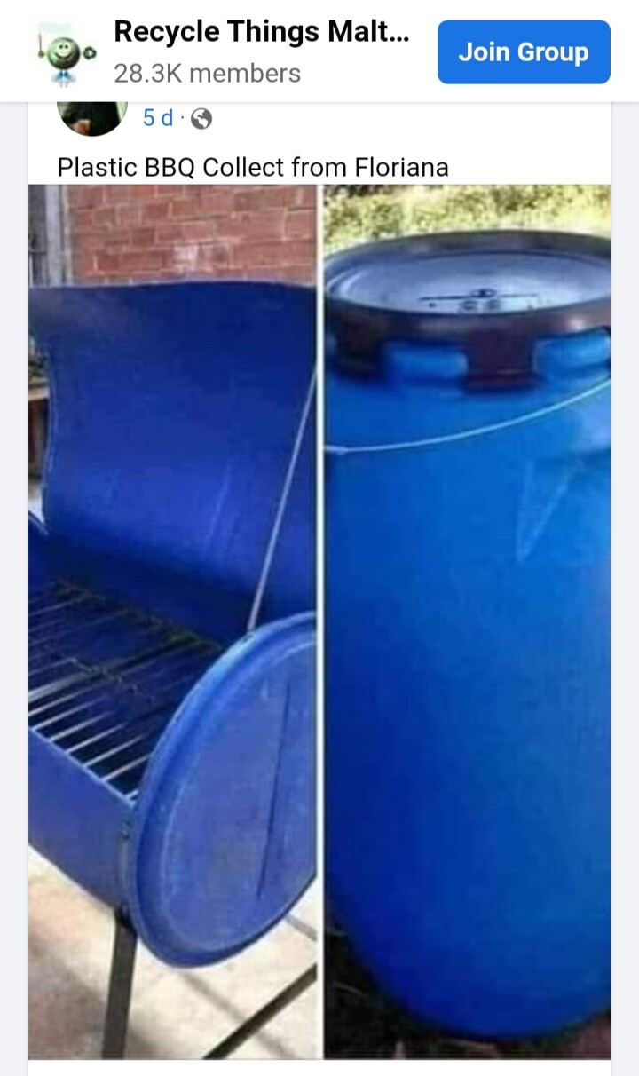 Meanwhile over at Meta...this was spotted on a freecycle Malta facebook group, I teally hope nobody tries to ise this or its nice lumps of molten plastic with bbq meal 🤣 #Malta #plasticBBQ #BBQ #OilDrum #badthingstomakeabbqfrom #Malta #FacebookGenii #funny #humour