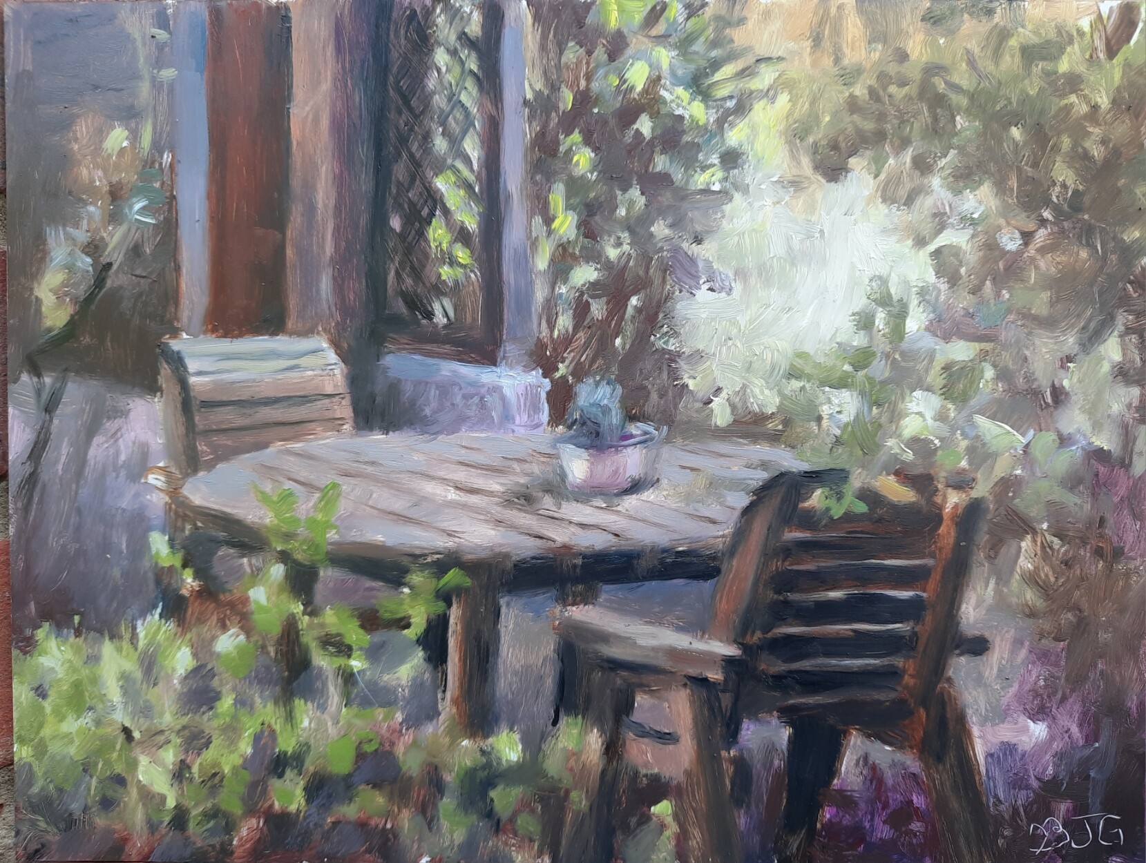 A 2 & half hour oil sketch from yesterday afternoon, painting in the garden. Oil on primed panel, 23 x 30 cm.