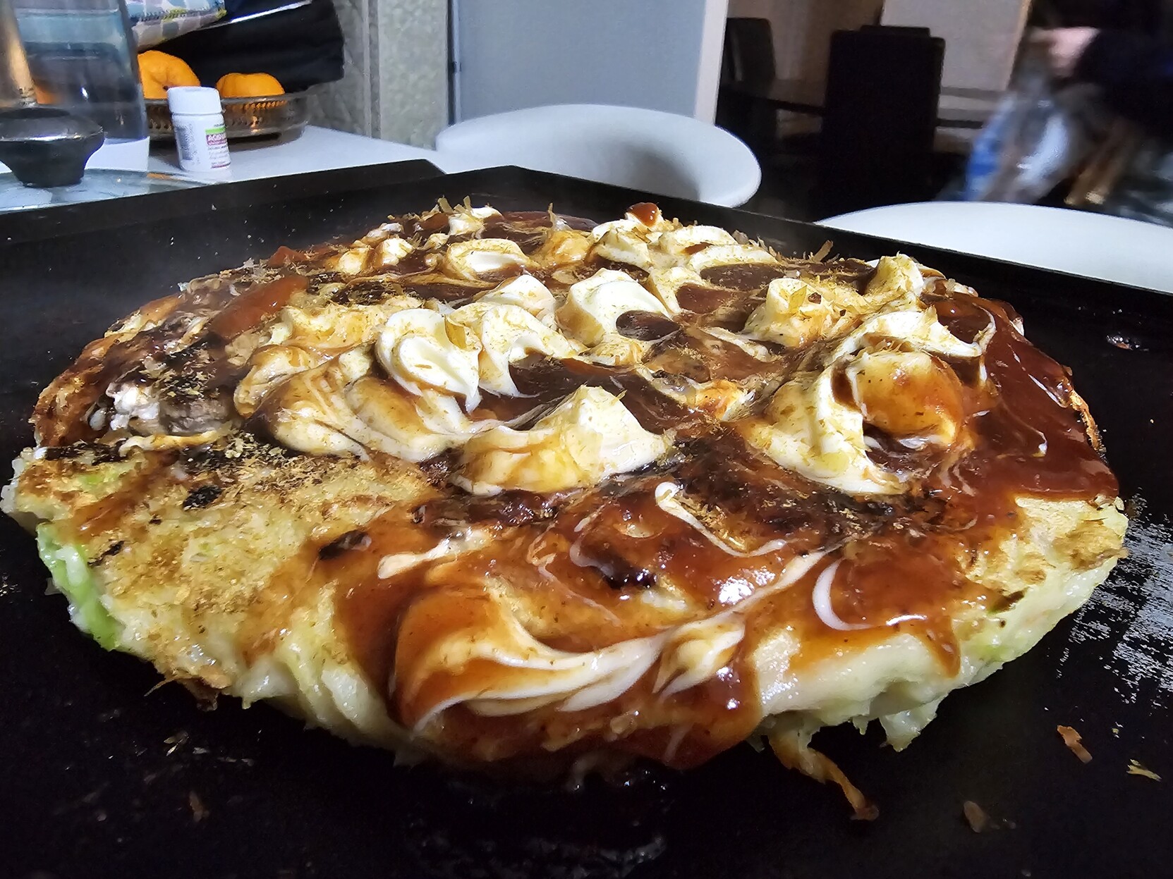 Went all out for the #Okonomiyaki experience, eating it straight off the griddle tonight. So much yum!