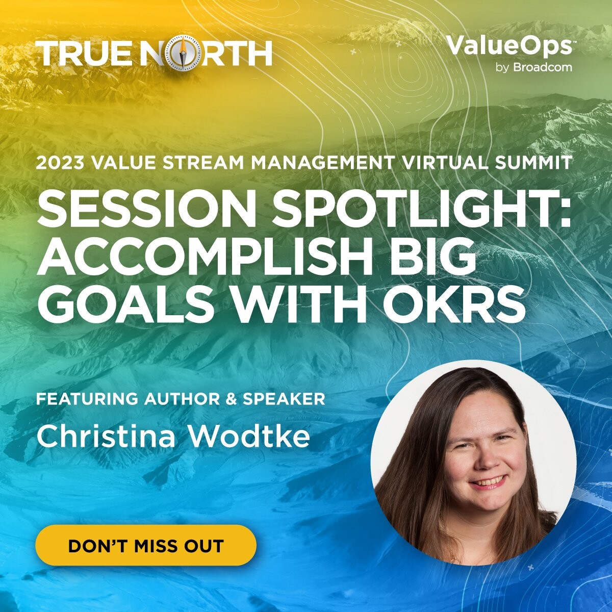 Join @cwodtke, author and speaker, as she demonstrates how to use #OKRs to help teams accomplish big goals in a methodical way. Learn to build a new approach to OKRs! #ValueOpsVSM #TrueNorth https://bit.ly/3KRMBX8