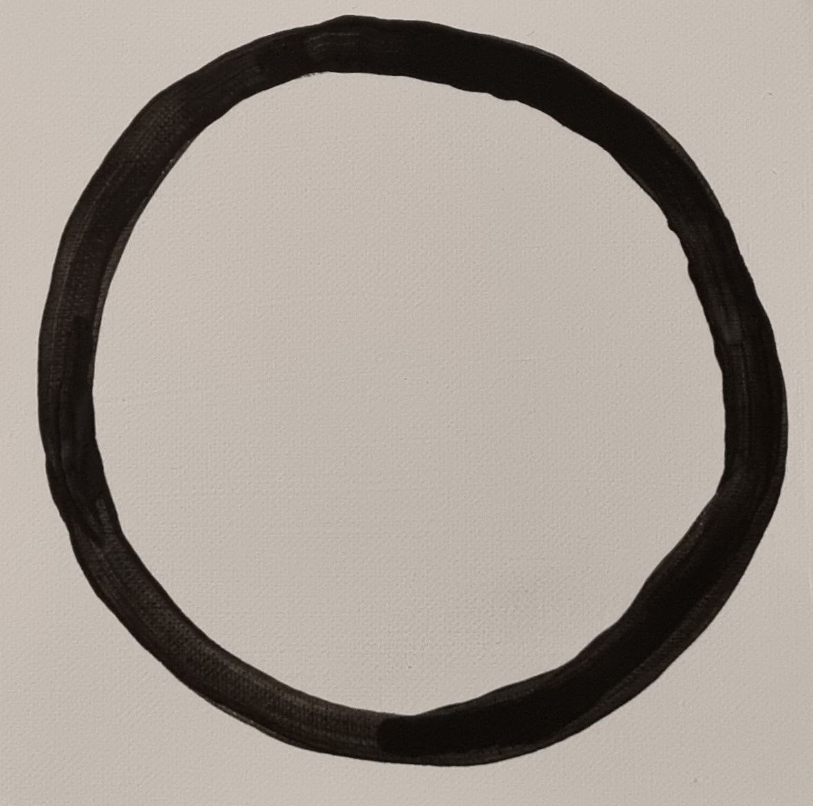 Der Screen hat keine Icons, sondern nur weiße Ziffern und Buchstaben. Er zeigt die Uhrzeit, das Datum sowie meine bevorz. Apps (Spotify, Threema, Signal & Notizen).