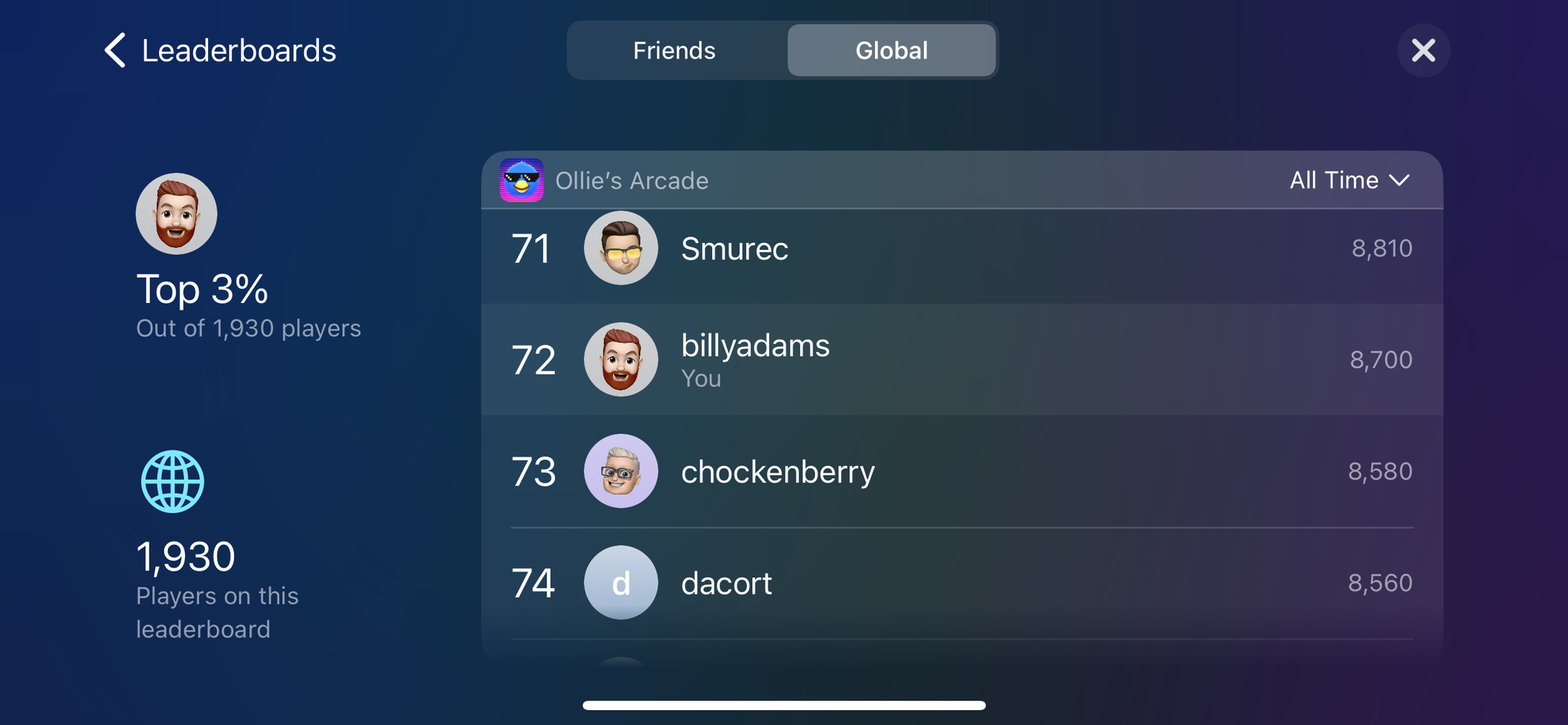 Rather excited to see I just soared Ollie past @chockenberry on the leaderboard! #OlliesArcade