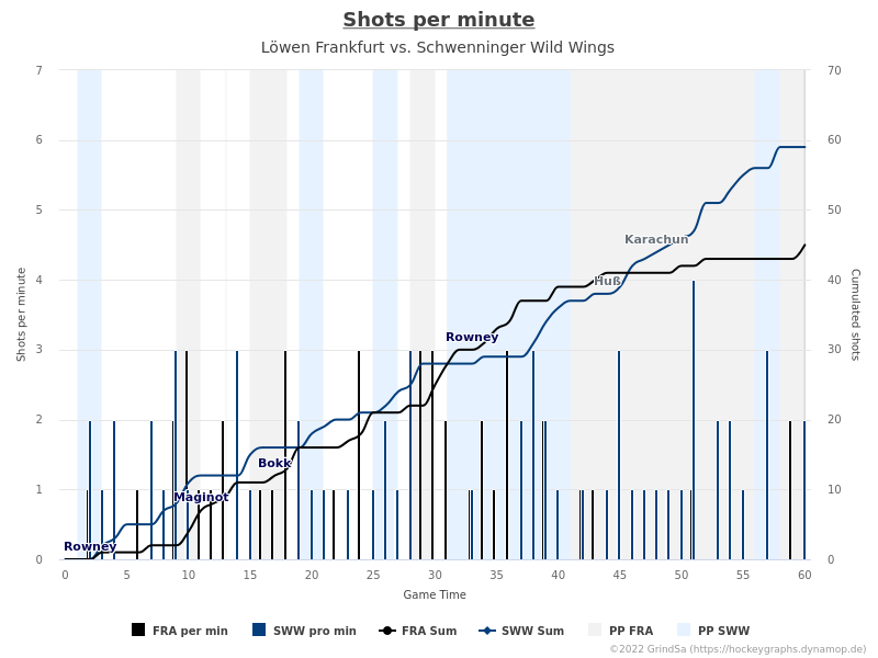 Hier ein paar Grafiken zum Spiel FRA gg. SWW. vom 30.12.2022 (Endstand: 5:2).