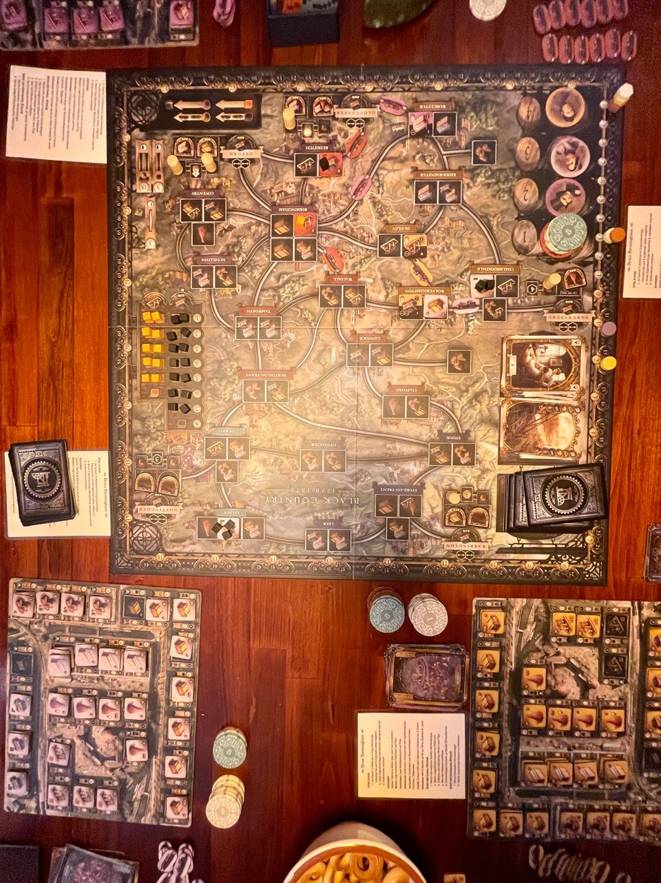 Heute kam #Brass: Birningham auf den Tisch. Mit Einführung und viel Erklärung während der Runde haben wir sagenhafte 5 Stunden gebraucht - sicher nicht normal, aber speziell ich bin doch einige Male in #AnalyseParalyse verfallen. Trotzdem war jede Minute interessant und spannend. Zu Recht so hoch bei #BGG bewertet. Das lange überlegen wurde auch belohnt; konnte mit 132 Punkten den Sieg einfahren. Als Absacker gab es noch jeweils eine Runde #OneKey und #EinfachGenial. Ein schöner Abend.