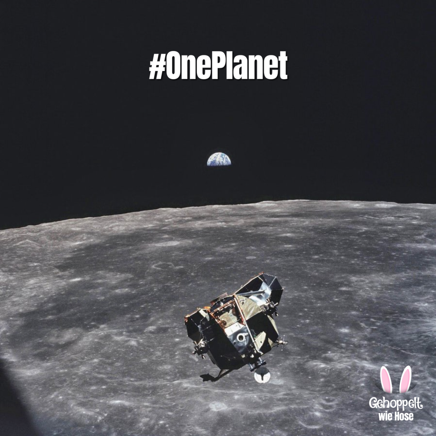 Michael Collins, der Astronaut, der dieses Foto 1969 aufnahm, ist der einzige Mensch, tot oder lebendig, der nicht auf dem Bild ist. Gänsehaut? Mehr dazu in der nächsten Folge... #OnePlanet https://gehoppeltwiehose.de