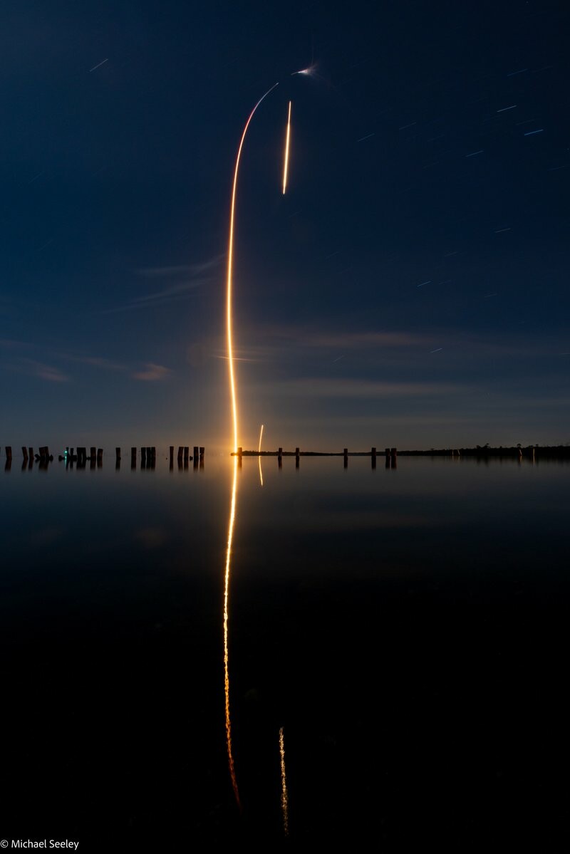 A truly beautiful evening for #SpaceX #OneWebLaunch16 #satellites #Falcon9 B-1076-2 on time liftoff at 11:50 PM ET 1-9-23 from SLC-40 with a LZ-1 landing with clear skies and a calm Indian River foreground for streak shots!
