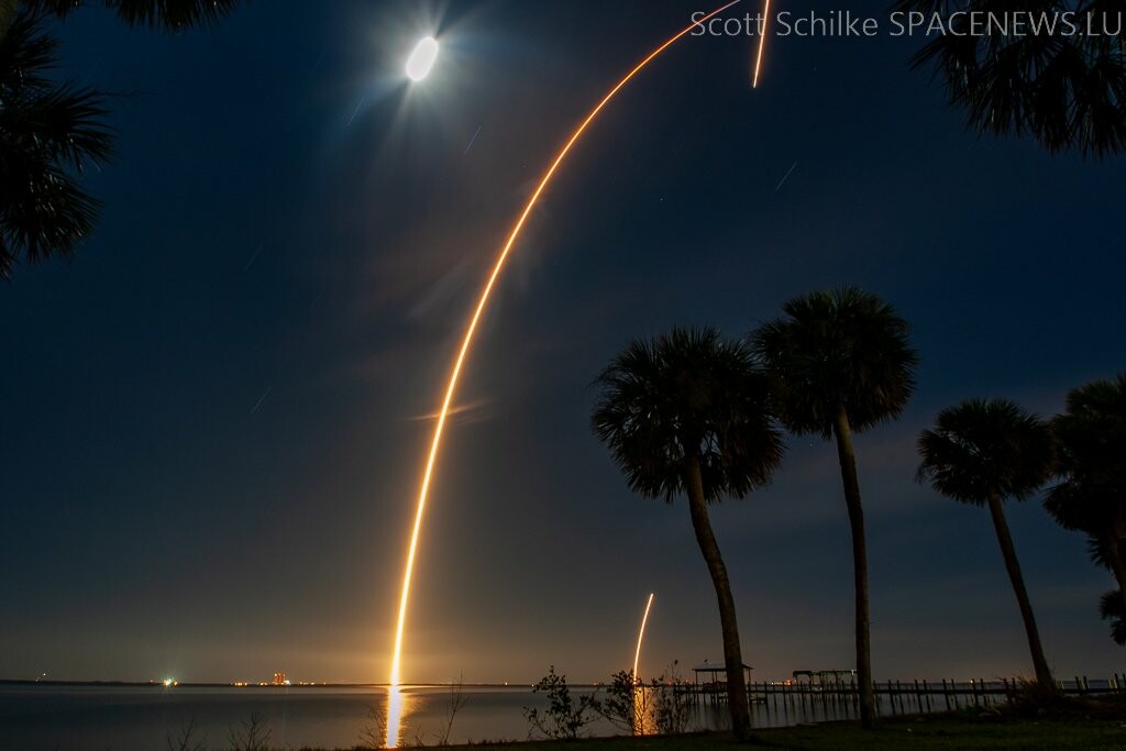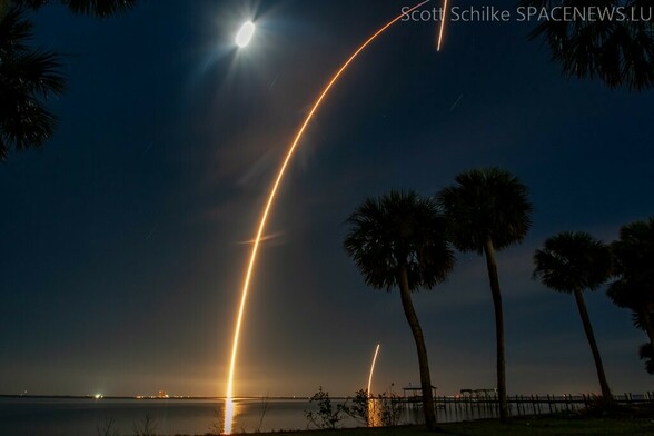 What a launch! SpaceX Falcon 9 streaks into the night sky, just before midnight β Launching OneWeb 16 into orbit.