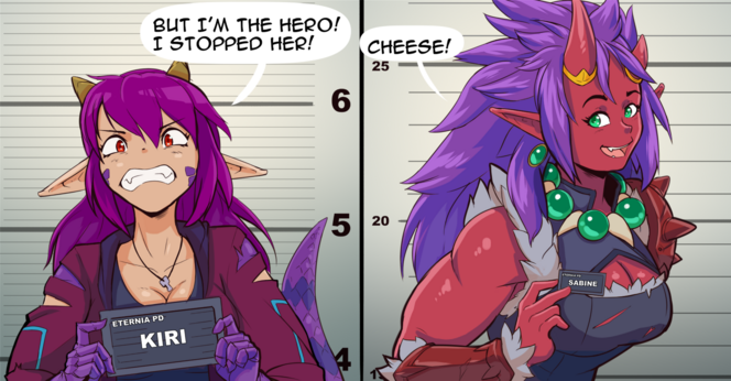 #wip of my other main PNG tuber, my oni form. Adding a mercenary girl for scale and some props and stuff
