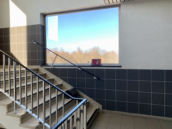 doing a virtual talk for #OOPKonferenz from #CfgMgmtCamp and this was the best setup I could find. had to stand on the first step to make the height work but bonus points for people wandering through the background 😅