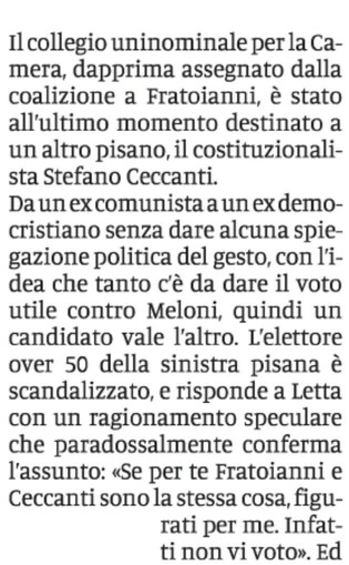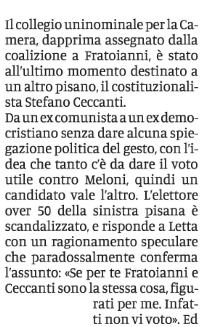 Su @DomaniGiornale@twitter.com due pagine di @giorgiomeletti@twitter.com lucide e dolorose sullo smarrimento dell’elettorato di sinistra