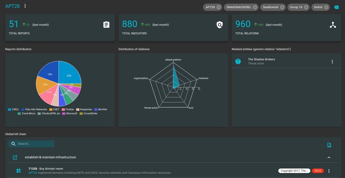 OpenCTI - Open platform for cyber threat intelligence https://www.opencti.io/en/ #visualization #cybersecurity #relationship #automation #opensource #mapreduce #platform #security #database #standard #rabbitmq #opencti #graphql #elastic #license #pregel #apache #stix2 #cyber #react #redis #minio