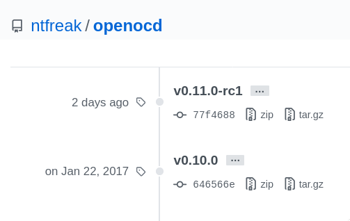 #openocd 0.11 RC1, hardly 4 years after the previous 0.10 #hurray! https://github.com/ntfreak/openocd/releases