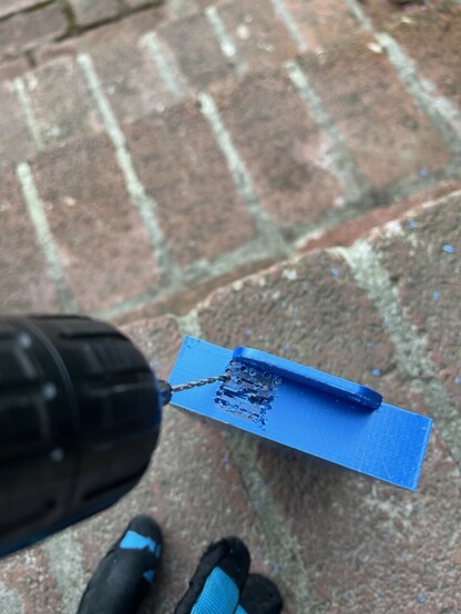 Continuation of the I’ll fated project to fix a leak in the garden drip system. Step 35 or whatever .. drilling a hole for the Ethernet cable that wasn’t in the 3d printed enclosure for #raspberrypi #opensprinkler enclosure. Power drill + #3dprinting to sub millimeter accuracy is a great combo