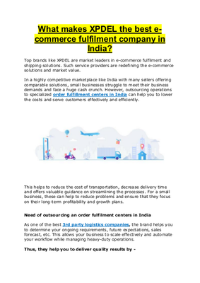 What makes XPDEL the best e-commerce fulfilment company in India.pdf