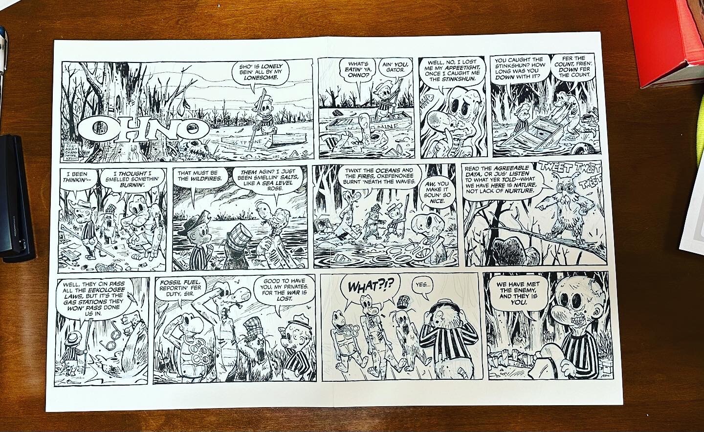 Pogo homage with an eco-catastrophe twist by artist Cliff Chiang and writer Brian Azzarello. Produced for the “The Most Important Comic Book on Earth: Stories to Save the World” from the Rewriting Extinction project. #originalcomicart