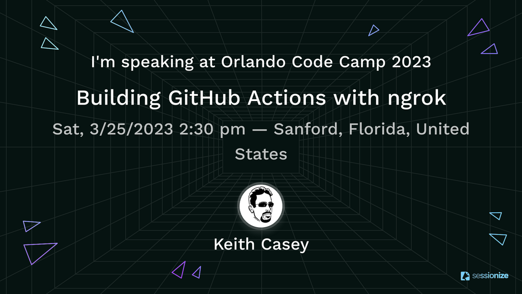 Come see Keith Casey's presentaton "Building GitHub Actions with ngrok" at #OrlandoCodecamp on March 25th: https://orlandocodecamp.com/session/#sz-session-430359