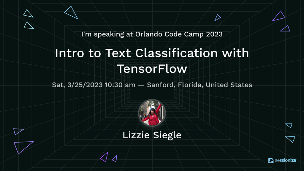We have had a few schedule changes, so make sure to check the new times on Lizzie Siegle's presentaton "Intro to Text Classification with TensorFlow" at #OrlandoCodecamp on March 25th: https://orlandocodecamp.com/session/#sz-session-417726