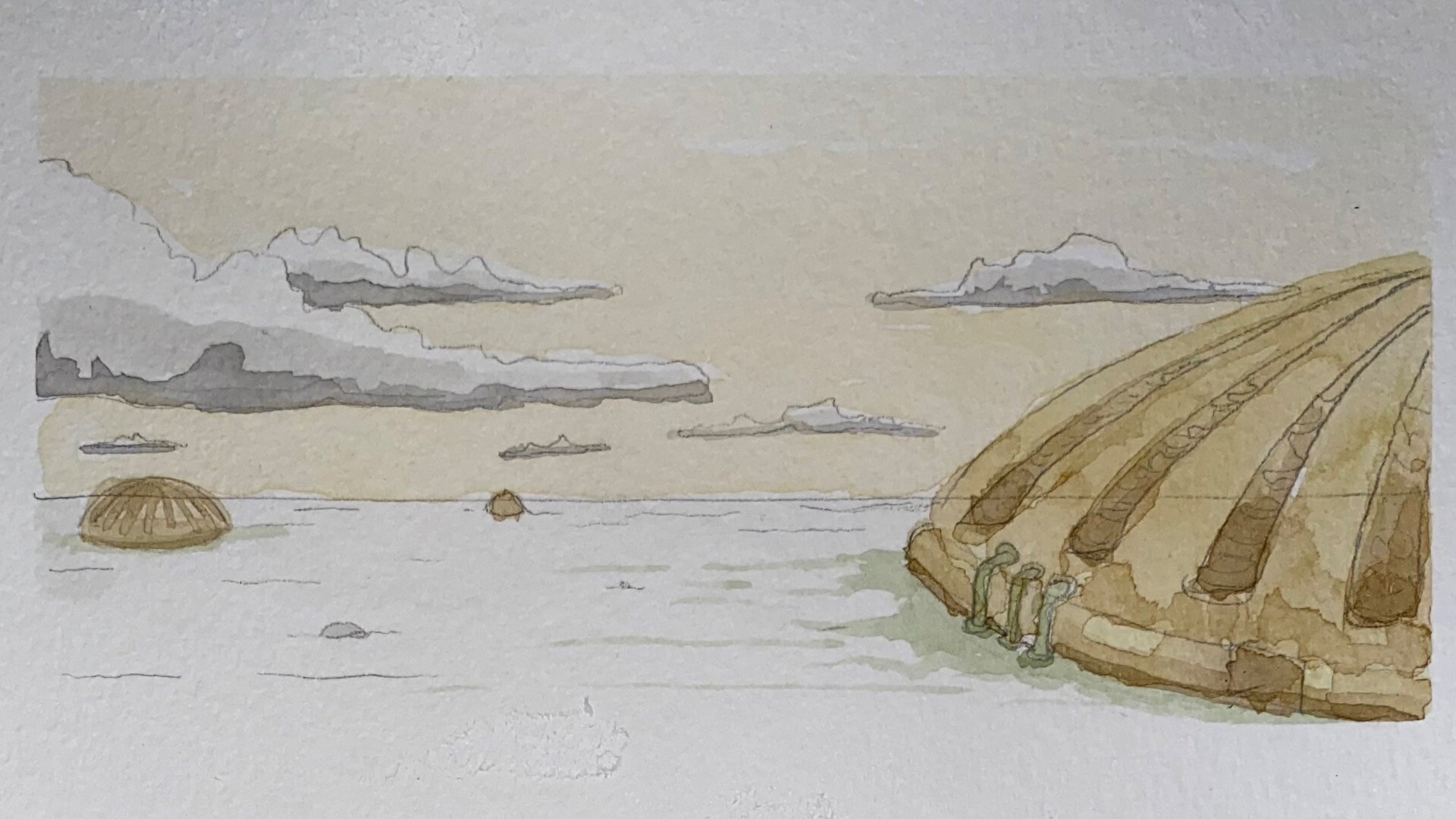 'facility', 2022. digitals over acrylic ink wash on watercolour paper, 5"x7"