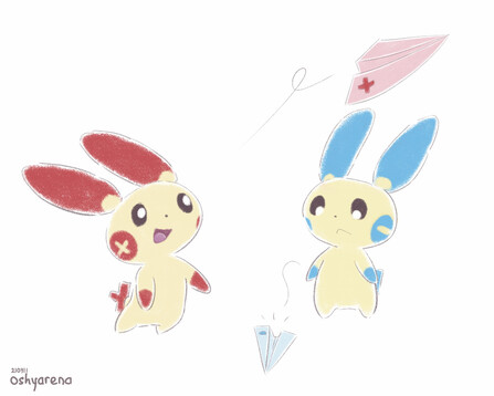 Plusle and Minun are playing paper planes!