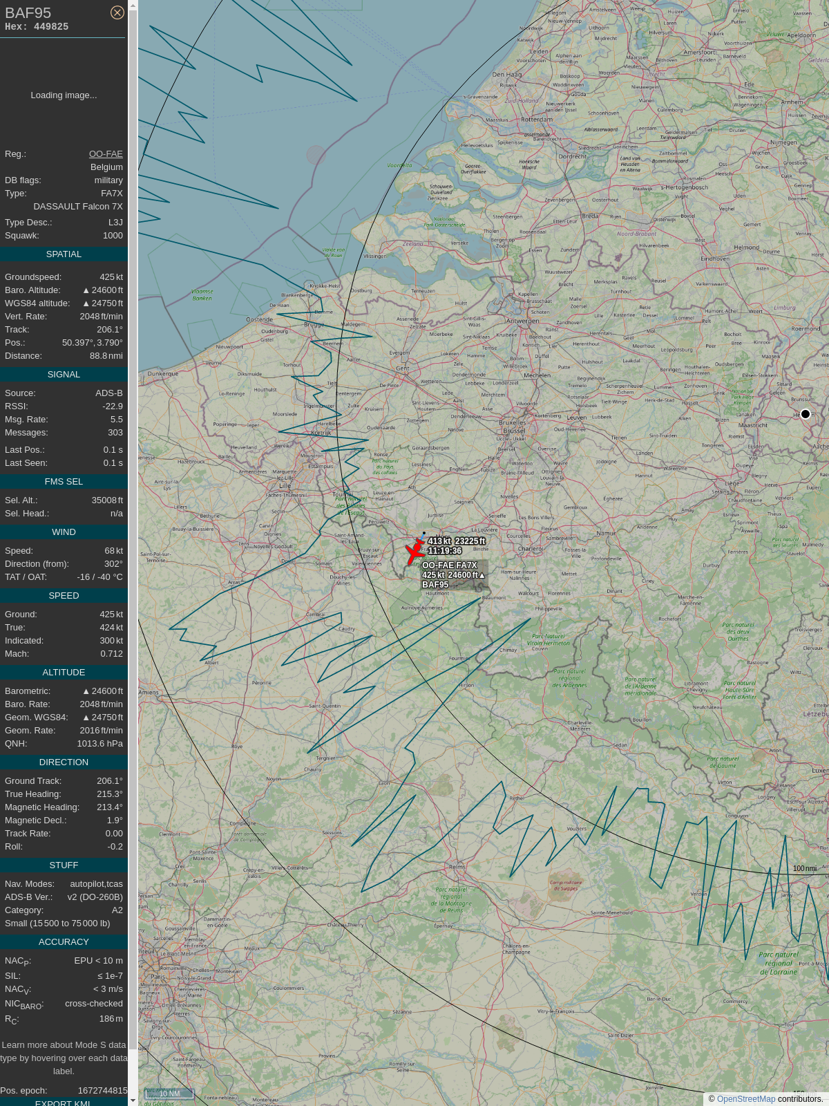 #PlaneAlert ICAO: #449825 Tail: #OOFAE Flt: #BAF95