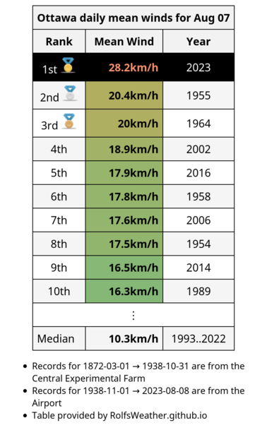 🥇Today is #Ottawa's 5th consecutive September day with maximum humidex ≥35 which puts this run in a 3-way tie for 1st place for the longest run on record. If this continues, we will break the all-time record tomorrow. #YowWx #OttWeather #YOW #OttNews #ONWx