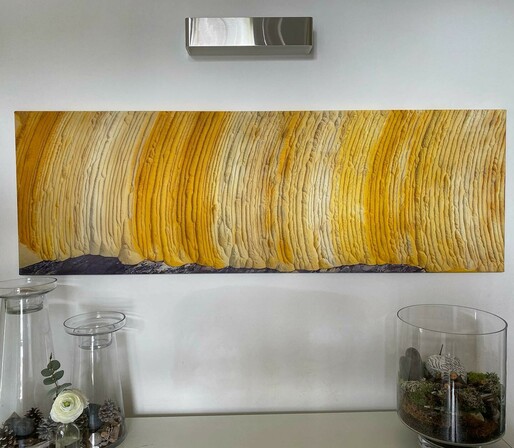 Neues Bild von mir auf Leinwand bei uns im Eingang. Ansprechend, aber mit ernstem Hintergrund. Abraum im Tagebau Garzweiler. Was von #Garzweiler und #Otzenrath und #Spenrath und #Holz und #Borschemich übrigblieb.