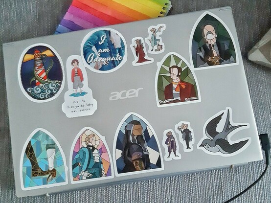 The stickers for my laptops OFMD makeover arrived just in time for #OurFlagBBC day 🥰🥰 Still got a few to try and squeeze in lol
