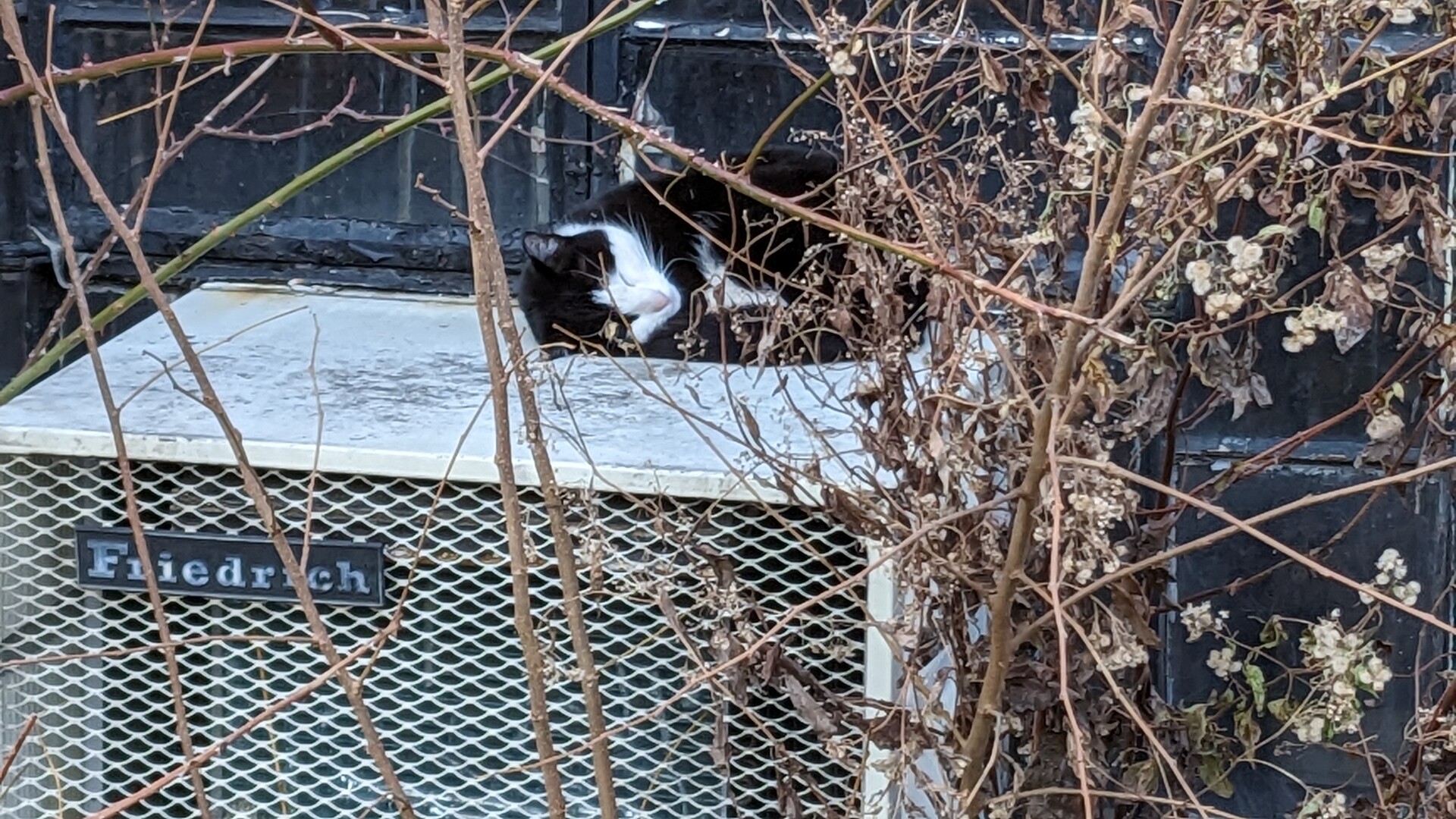 found a kitten curled up in a little ball on top of this ac, so peaceful and cute #cat #outdoorCat #steetCat