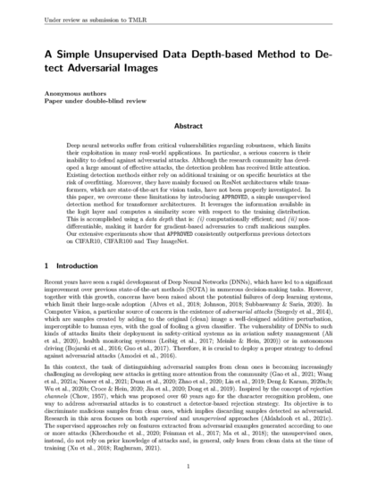A Simple Unsupervised Data Depth-based Method to Detect Adversarial Images